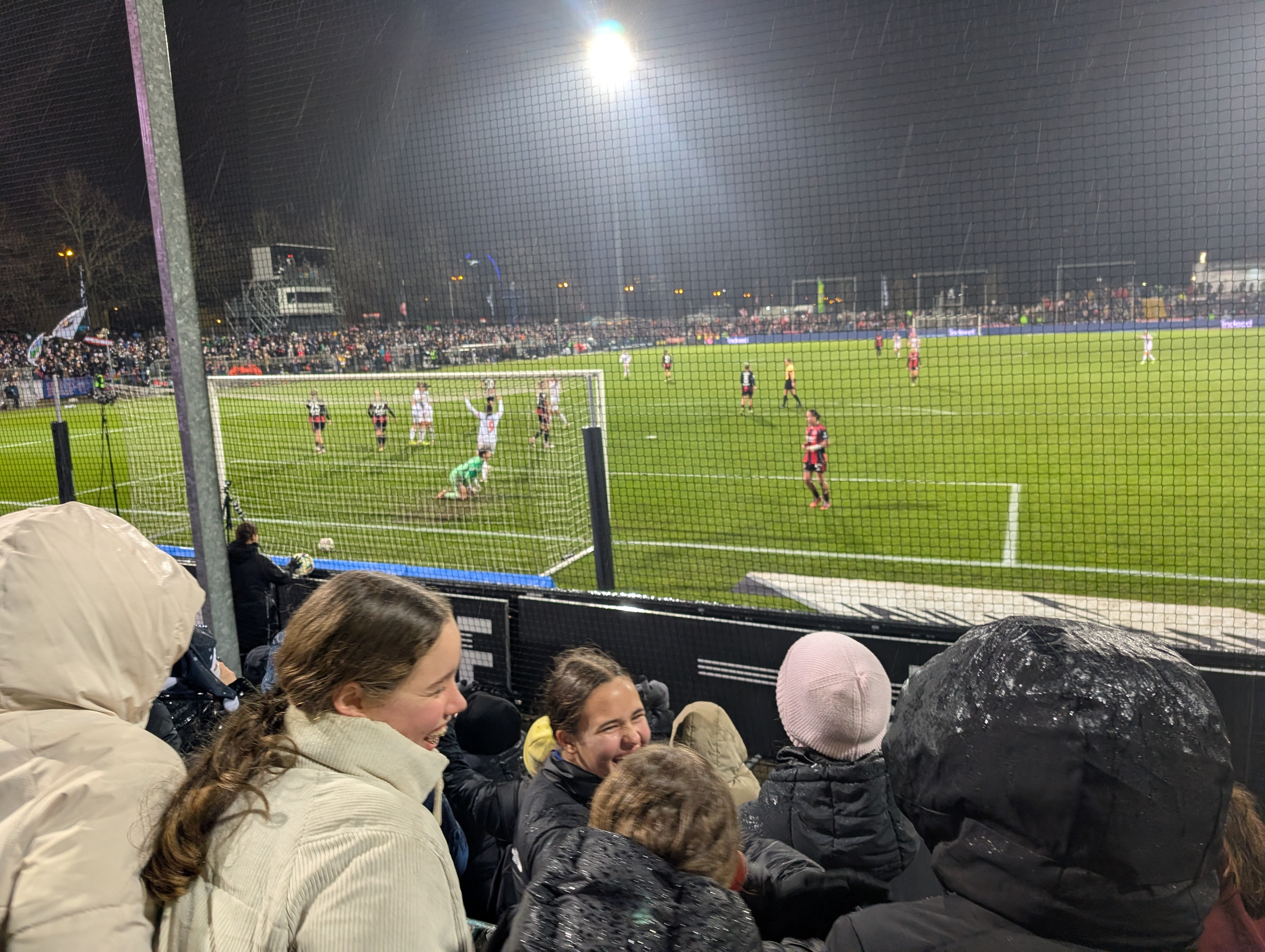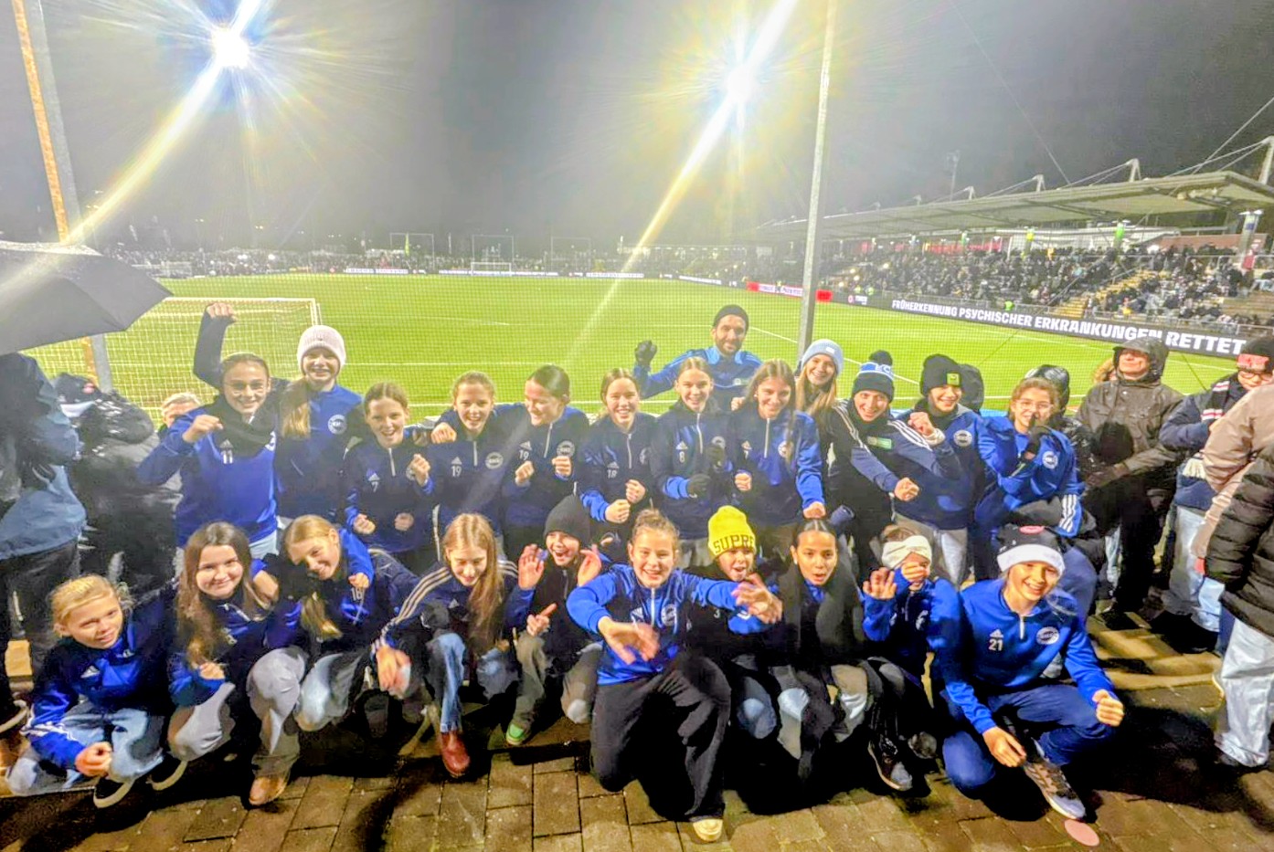 Stars und Vorbilder wie Laura Freigang oder Giulia Gwinn einmal live sehen und hautnah erleben – in diesen Genuss kamen die Fußballmädchen der Talentförderung Wiesbaden am 2. Advent. Nach einer entspannten Bahnfahrt von Wiesbaden nach Frankfurt sahen die Tafö-Spielerinnen ein sehr einseitiges Spiel im ausverkauften Stadion am Brentanobad. Im strömenden Regen gingen die Bayern-Spielerinnen durch Clara Brühl schnell in Führung, zur Halbzeit stand es bereits 0:3. Innerhalb der Talentförderung freute das freilich diejenigen, die den Bayern die Daumen drückten. Doch auch der Eintracht-Fanblock ließ sich weder vom Regen noch den Bayerntoren die Laune vermiesen, obwohl die Bayern in Hälfte zwei noch zwei Tore zum 0:5 Endstand schossen. Nach dem Spiel gelang es einigen Nachwuchstalenten sogar, ein Foto mit Nationalmannschaftskapitänin Giulia Gwinn zu machen. Ein wahrlich erfolgreicher Ausflug in die Mainmetropole.