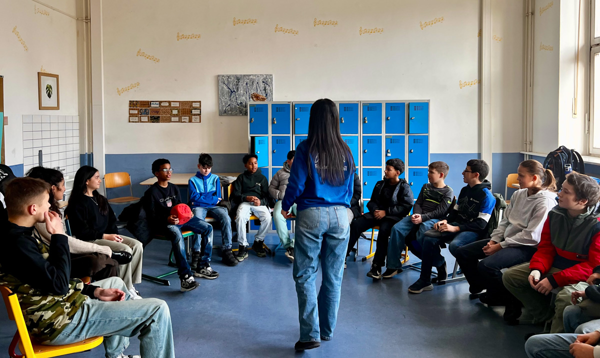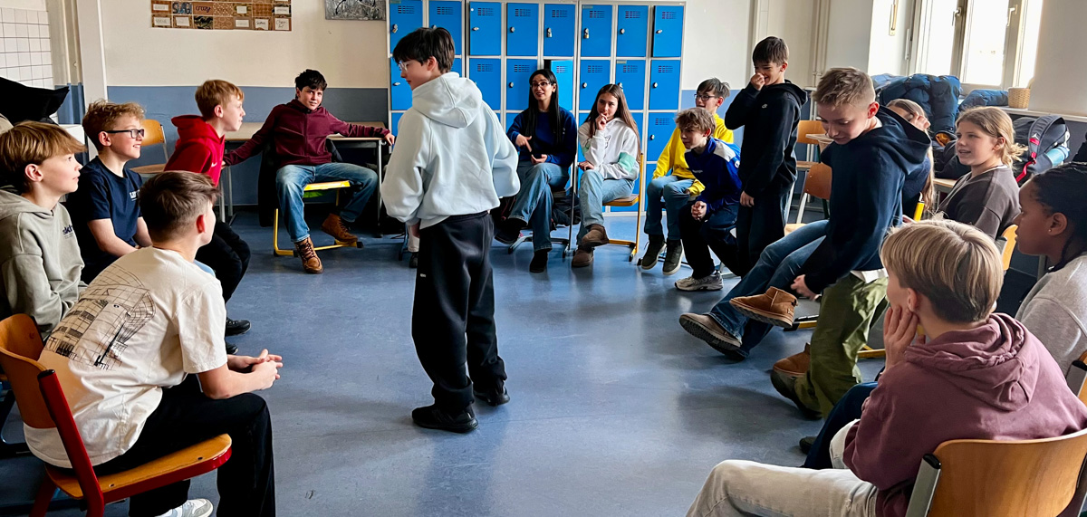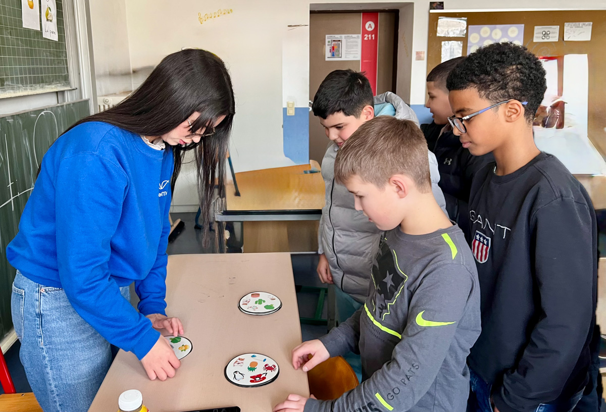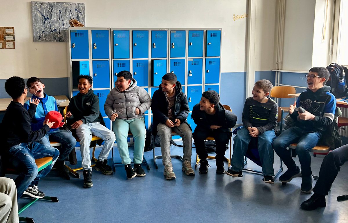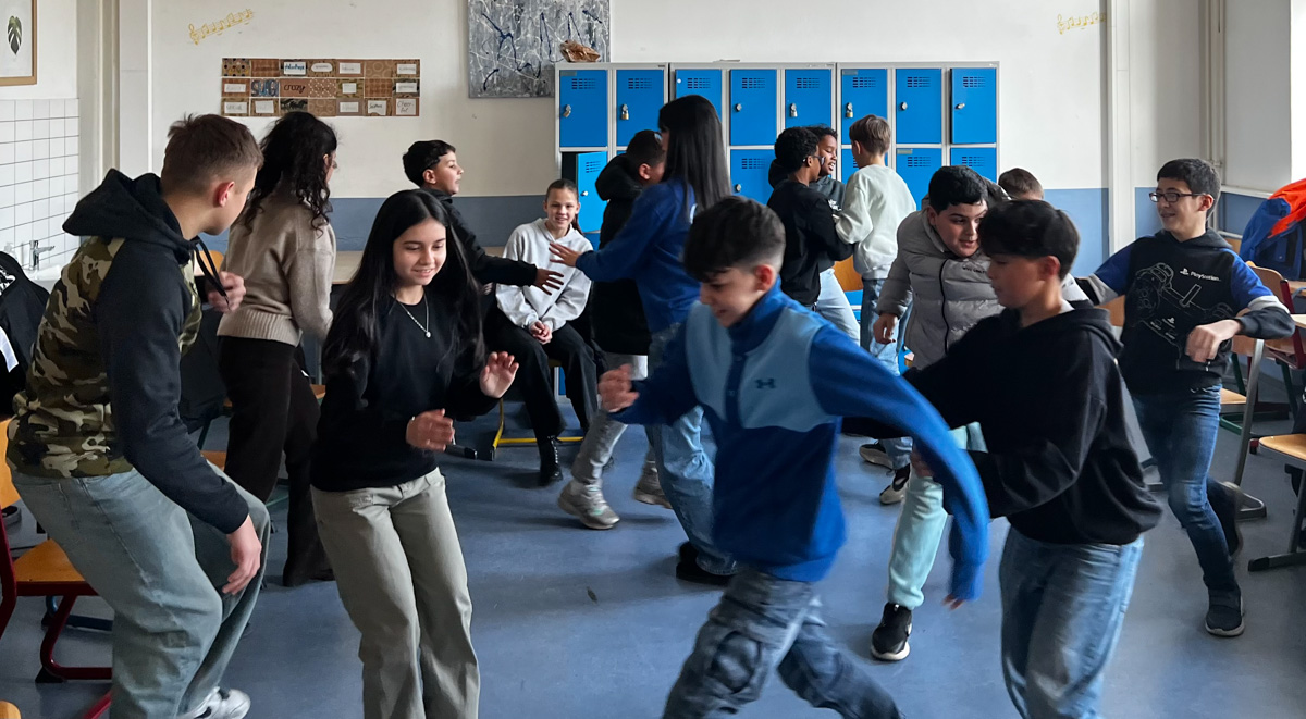 Im Januar war das FranceMobil zu Gast an unserer Schule. 58 Schülerinnen und Schüler der 6. Klassen lernten dabei spielerisch erste französische Wörter und Einblicke in die Kultur unseres Nachbarlandes kennen. Die junge französische Lektorin Amina gestaltete den Vormittag mit Bewegung, Spielen und Liedern – ausschließlich auf Französisch. So wurde Sprache lebendig und machte Lust auf mehr. Das Programm FranceMobil wird vom Deutsch-Französischen Jugendwerk (DFJW) umgesetzt.