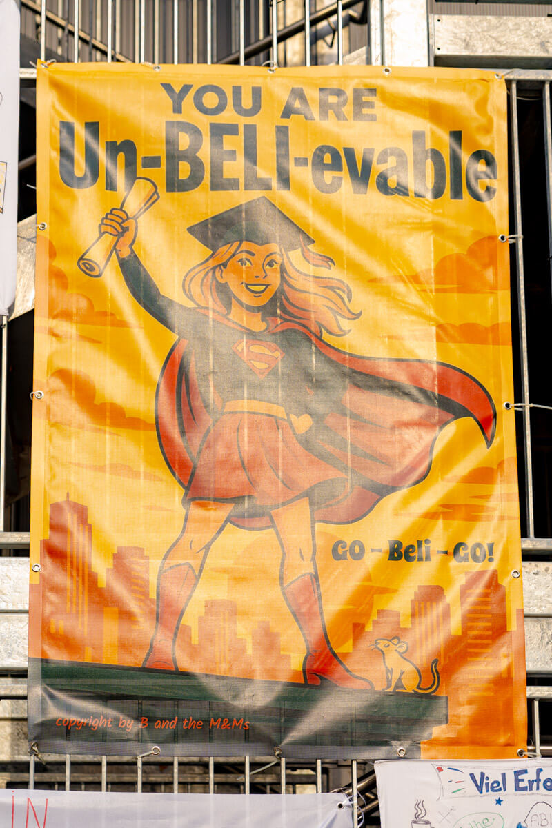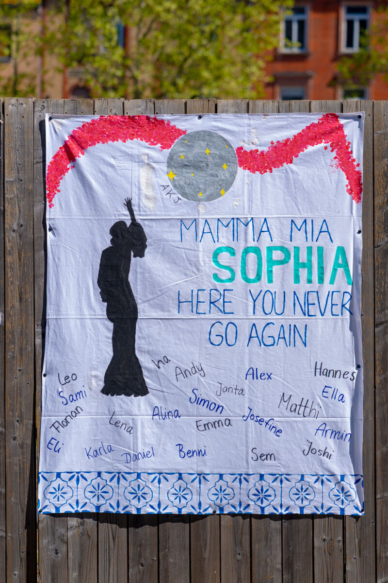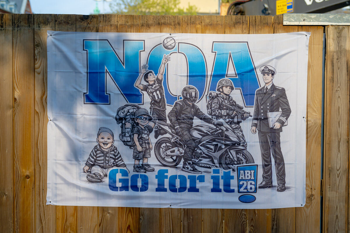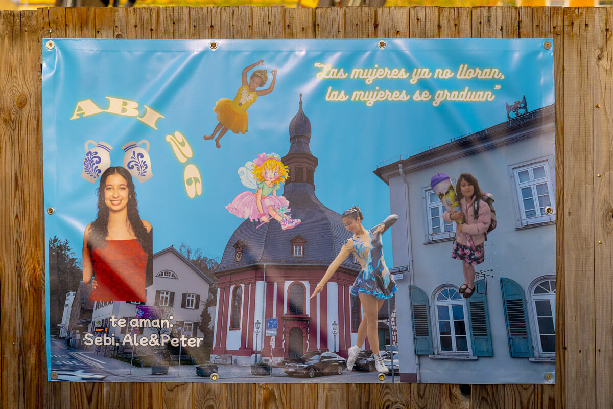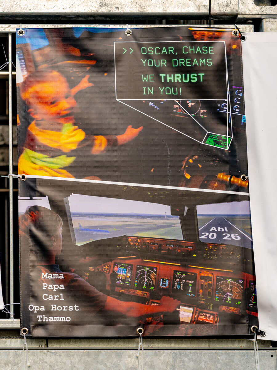 Auch in die­sem Jahr hän­gen wie­der zahl­rei­che lie­be­voll gestal­te­te Glück­wunsch­pla­ka­te an den Zäu­nen und Balus­tra­den der Schu­mann­schu­le. Sie wur­den mit viel Herz­blut, Krea­ti­vi­tät und teil­wei­se auch mit­hil­fe von KI ent­wor­fen und sol­len den Prüf­lin­gen, die sich gera­de den Abitur­prü­fun­gen stel­len, Mut, Zuver­sicht und ganz viel Glück schenken.