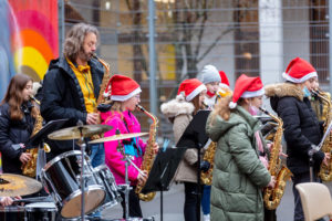 Am dritten Adventssonntag erklangen die Blasorchester und Ensembles der Elly-Heuss-Schule mit weihnachtlichen Melodien auf dem Schulhof und ernteten großen Applaus der Zuhörenden.