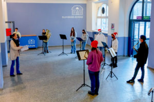 Da sämtliche musikalische Aktivitäten mit Bläsern und Sängern in geschlossenen Räumen in diesem Schuljahr nicht möglich waren, entschloss sich die Musikfachschaft kurzerhand zu einem „Outdoor“-Adventskonzert.