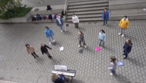 Am Freitag, dem 18.3. sangen ca. 50 SängerInnen der Elly-Heuss-Schule für den Frieden in der Ukraine.