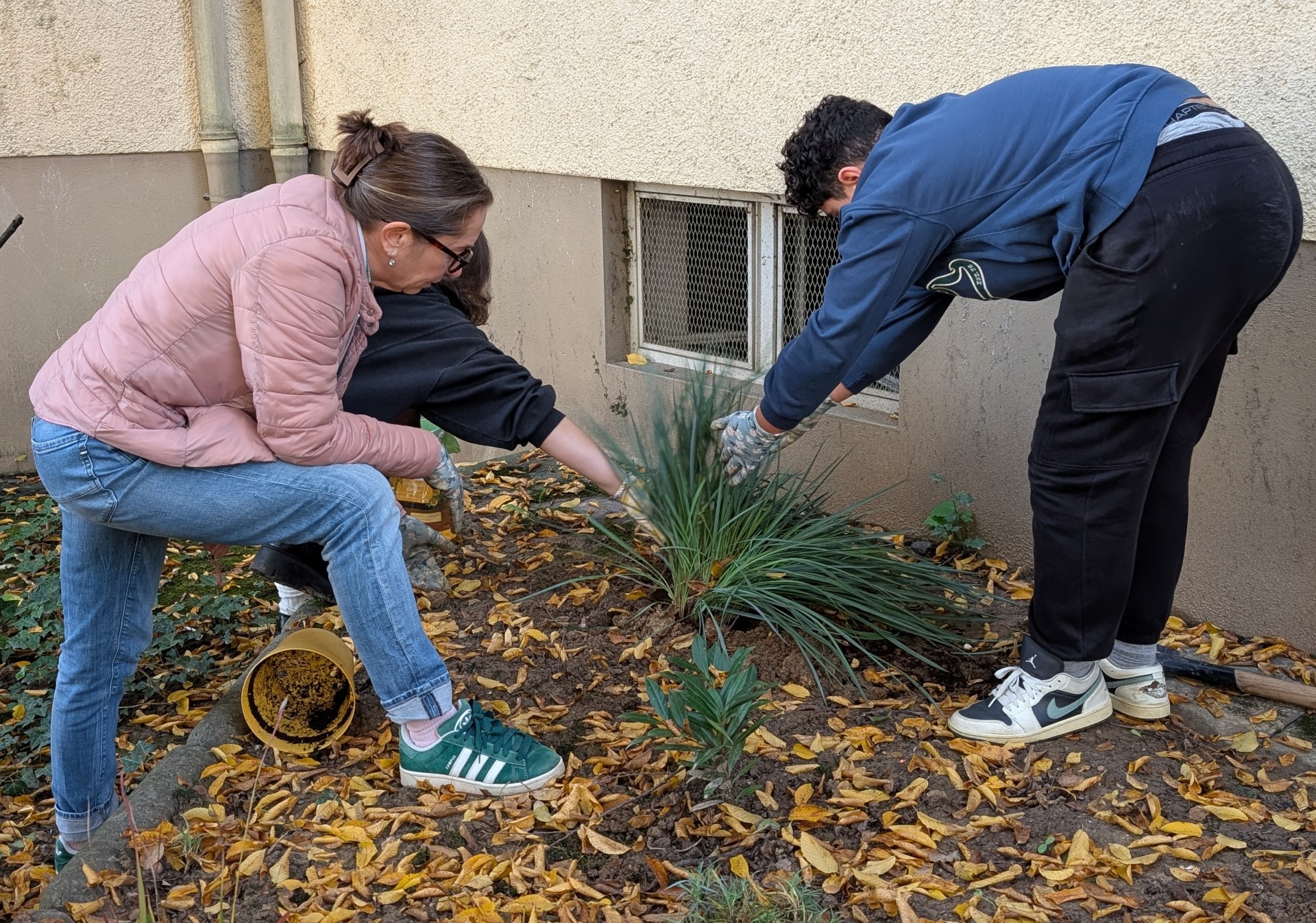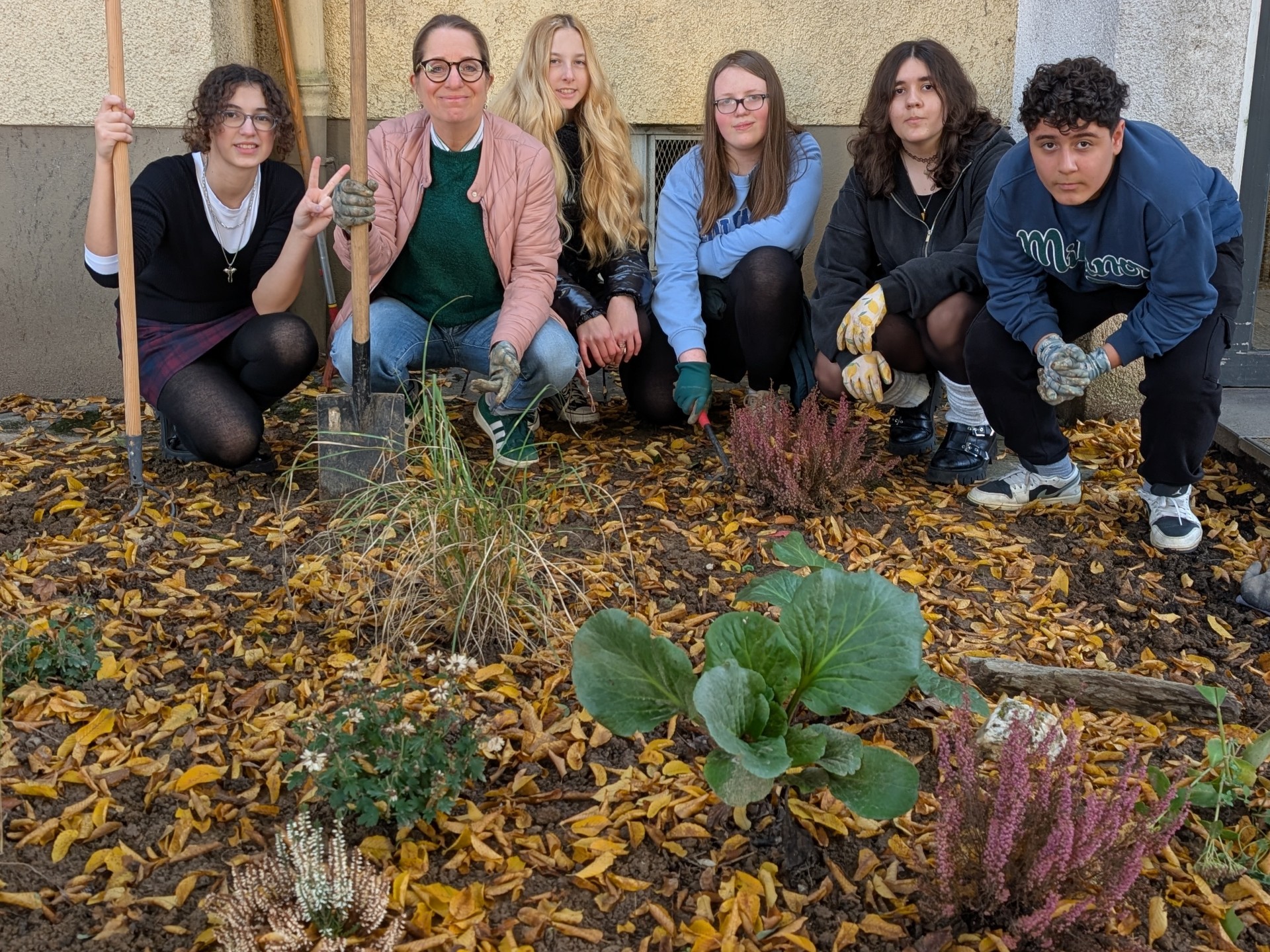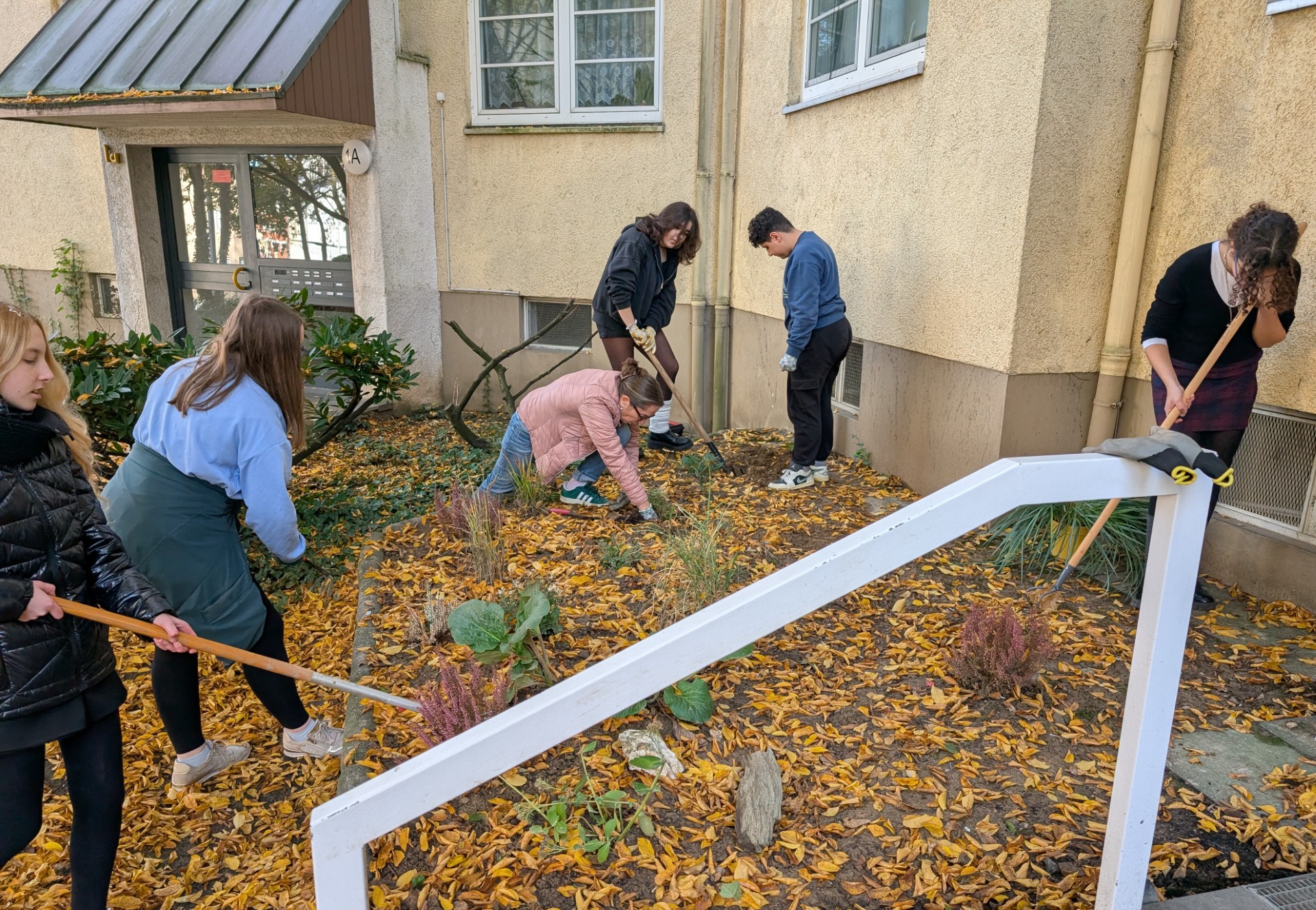 In Kooperation mit der GWW Wiesbadener Wohnbaugesellschaft mbH hat die Garten AG seit Beginn des Schuljahres ein neues Projekt gestartet: Wir begrünen die Beete der Seniorenanlage der Platter Straße 1b.